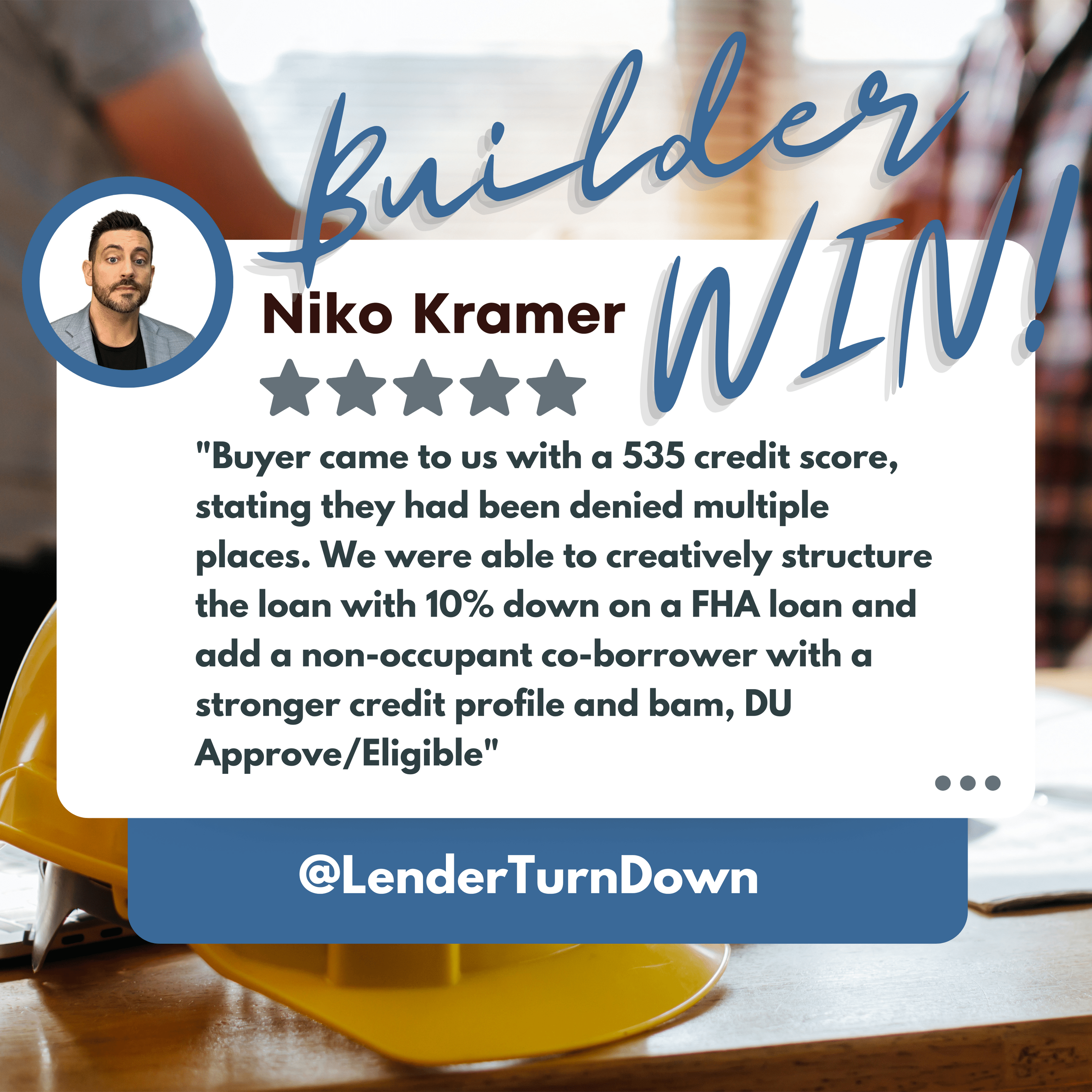 Not at all, Just like Real Estate Agents, not all Lenders are equal. Most Lenders will have one person, maybe two look at a Loan Application before "Turning it down". When I look at a potential loan, I look at every angle possible and when I run into a potential issue, I cross reference with Funded Loans and our Turn Down team. We have a combined 50+ years of Mortgage Loan experience in just our Leadership team, that's not counting our Loan Officers.